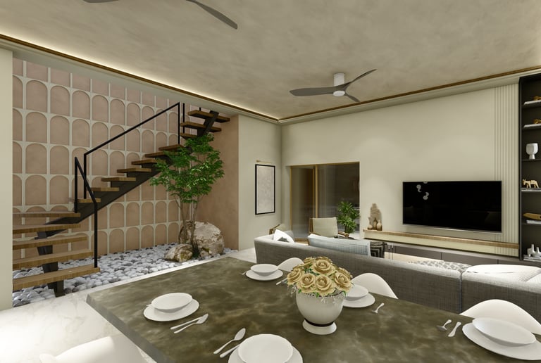 An ongoing home for a nuclear Kashmiri family, this residence is envisioned as a warm, rooted space—where layered carpets and thoughtful design bring comfort, familiarity, and a deep sense of belonging.
