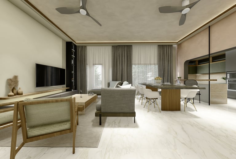 Thoughtful planning and a restrained palette ensure the home remains calm and cohesive, allowing everyday rituals and family life to take center stage. The result in progress is a residence that feels comforting, rooted, and personal—a modern home shaped by heritage and warmth.